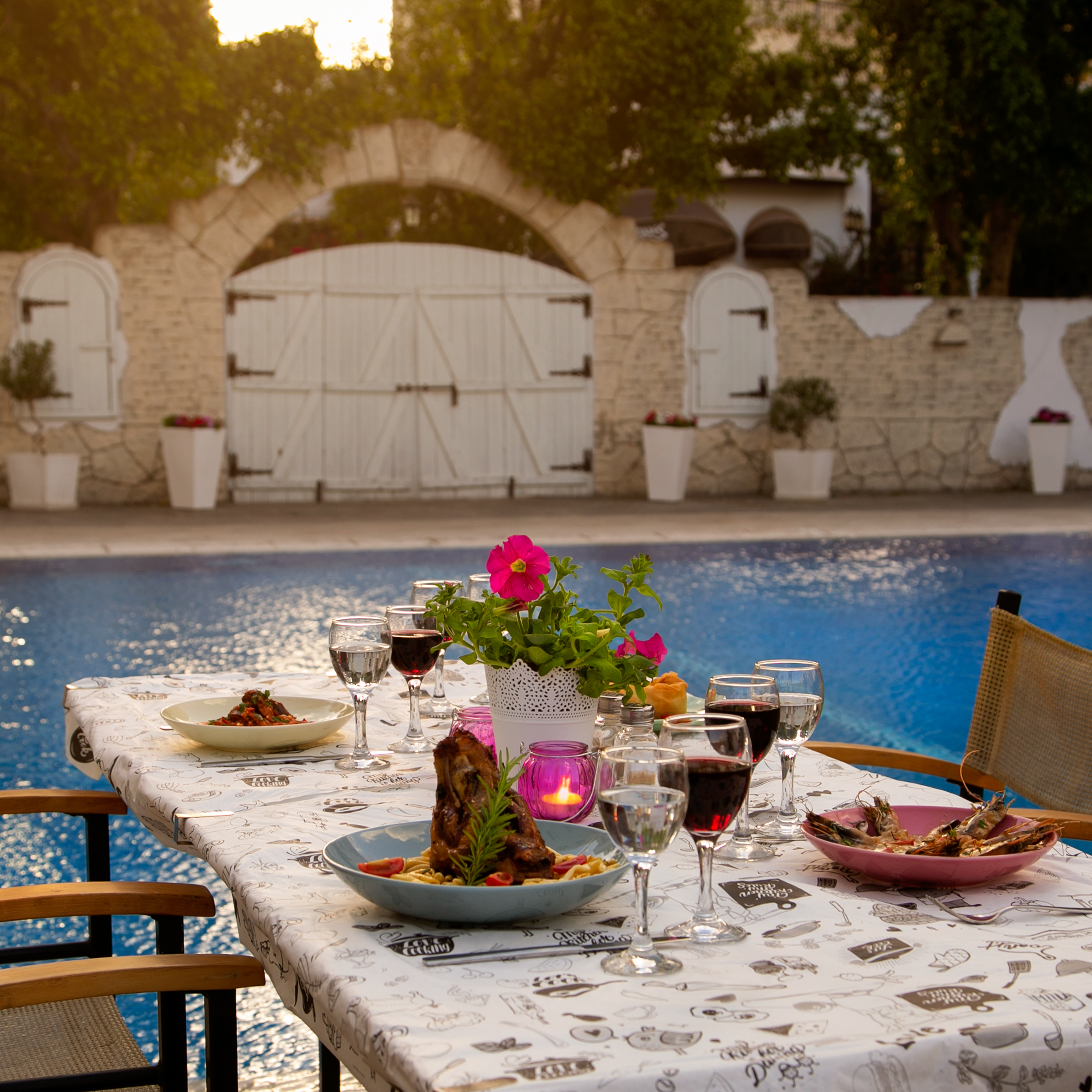 Take a swim and enjoy your lunch and cocktails by the swimming pool. You can select a light meal from our specially designed snack menu. The Café is open from 10 am – 6 pm every day of the week.